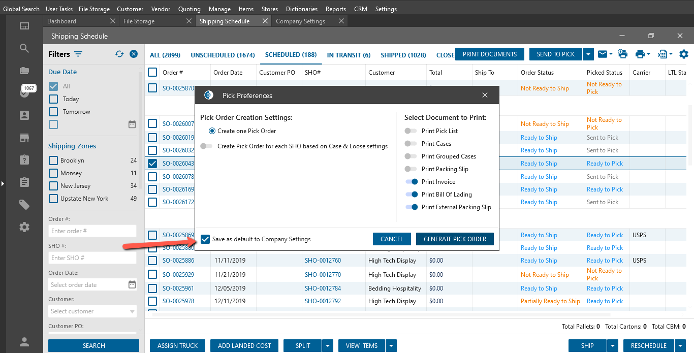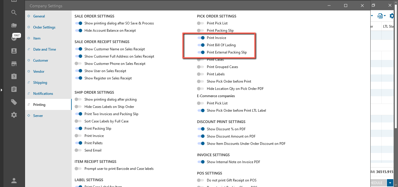 - in the Company Printing Settings for Pick Order -> he corresponding print checkboxes are checked by default.