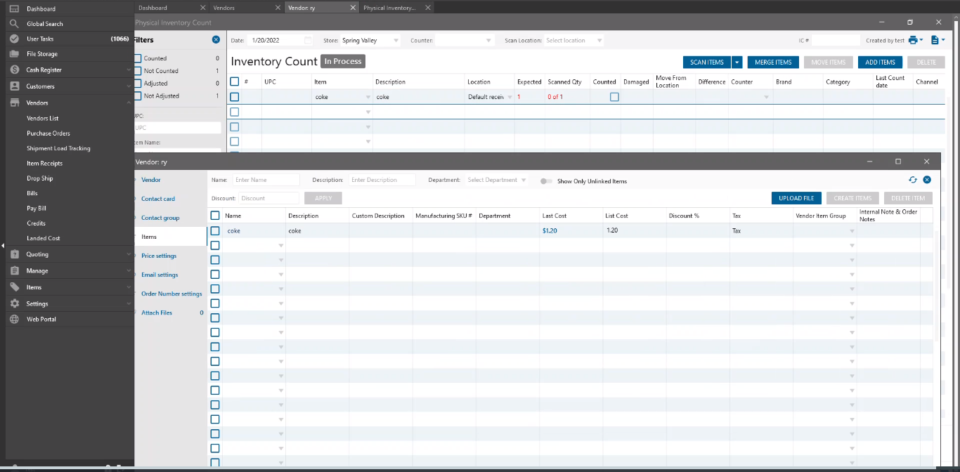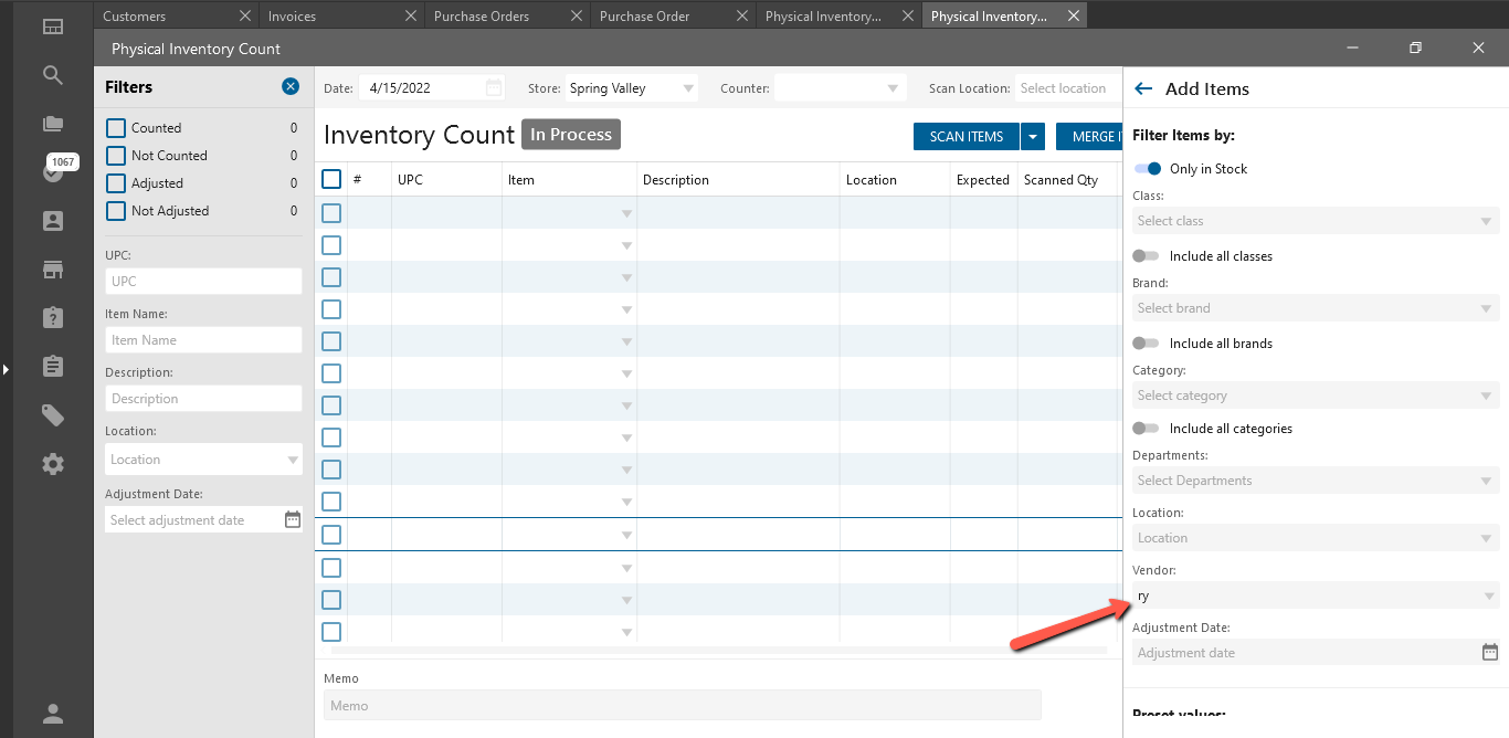 - after clicking on the “Add Items” button -> to the Physical Inventory Count are added Vendor Linked Items.