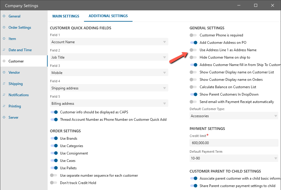 - was added tothe “Company Settings” -> Customer -> “Additional Settings” tab -> General Settings block next to the “Add Customer address on PO” checkbox;