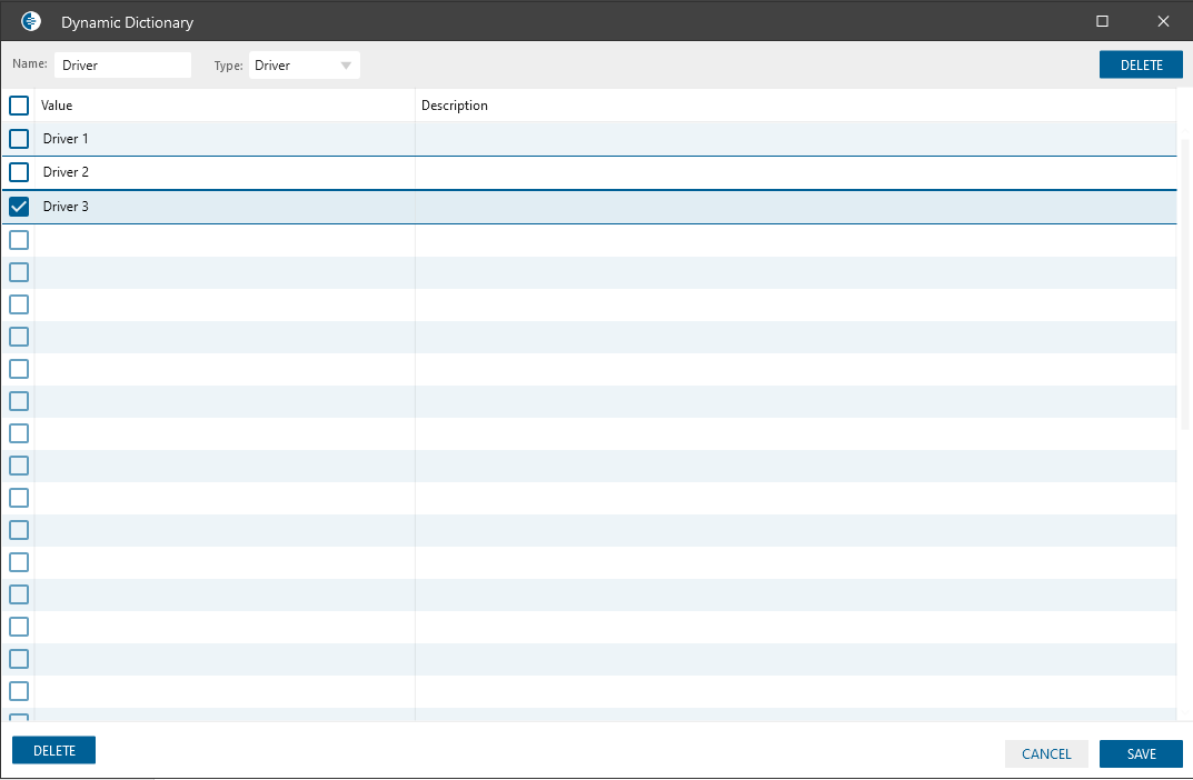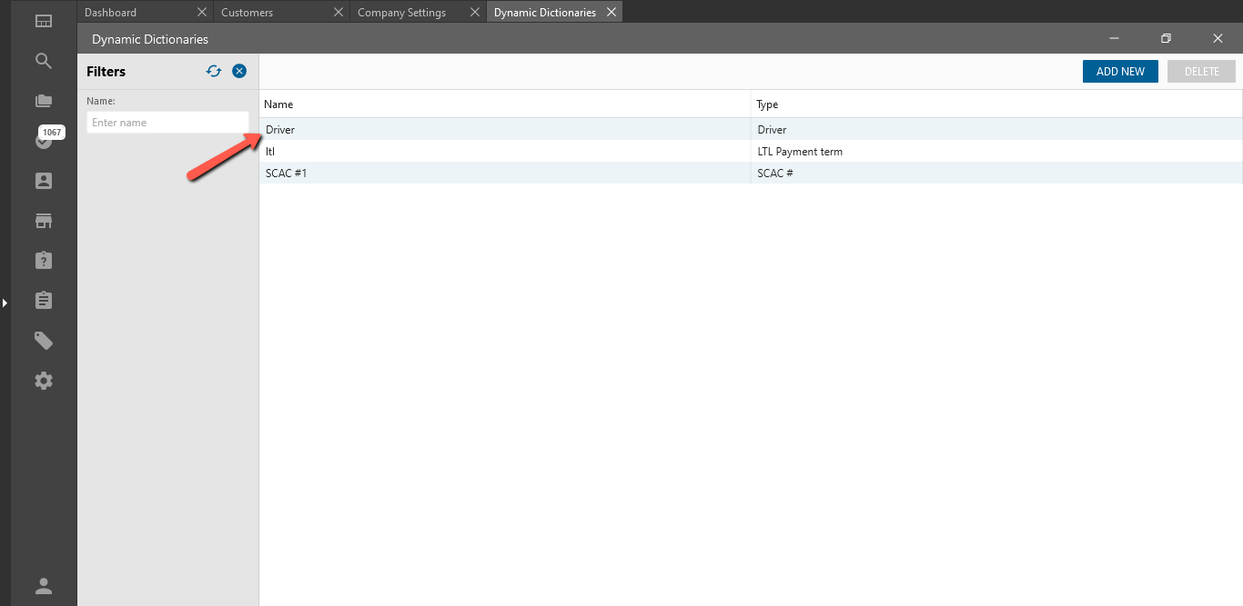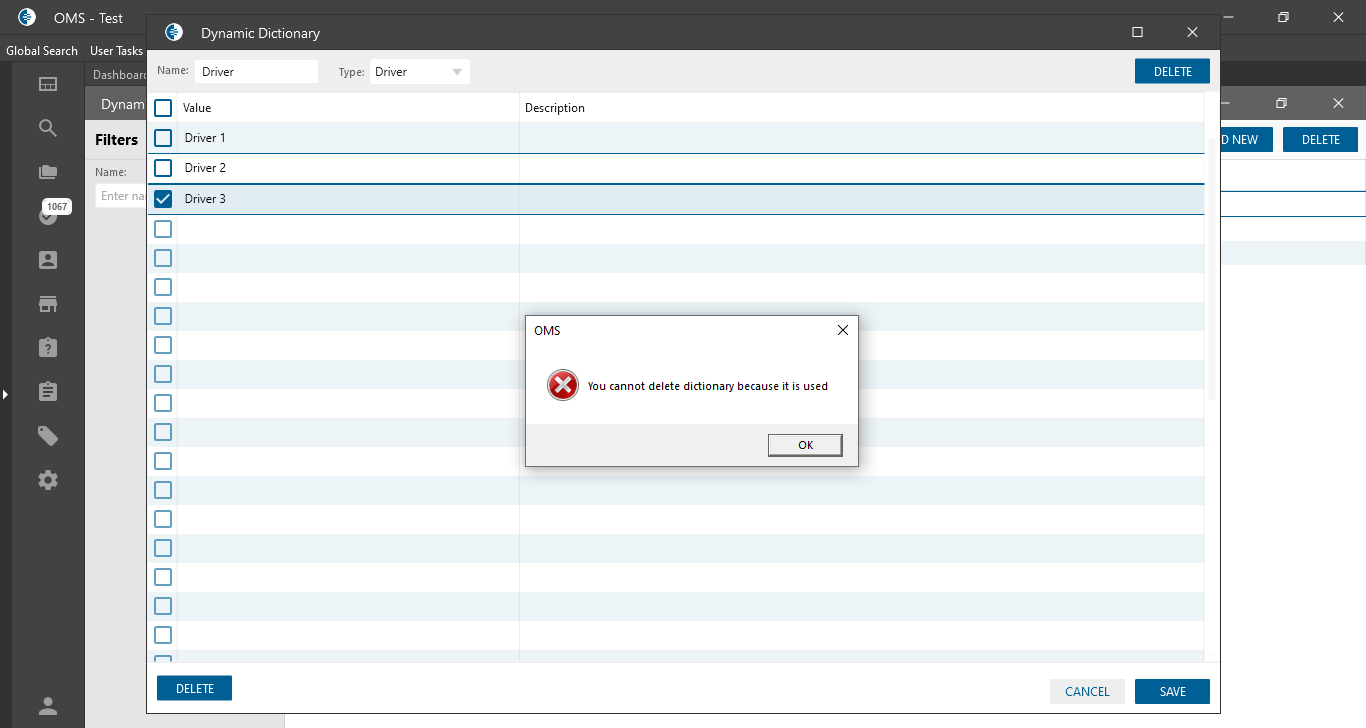 - if the user tries to create one more dictionary with such type the validation is displayed: “Dictionary with “Driver” type already exists. OK ”