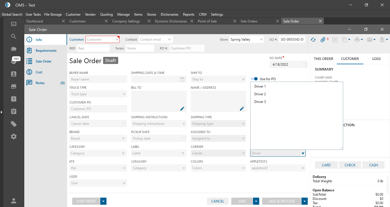 - if the Driver was used for some Orders -> the OMS message is displayed: