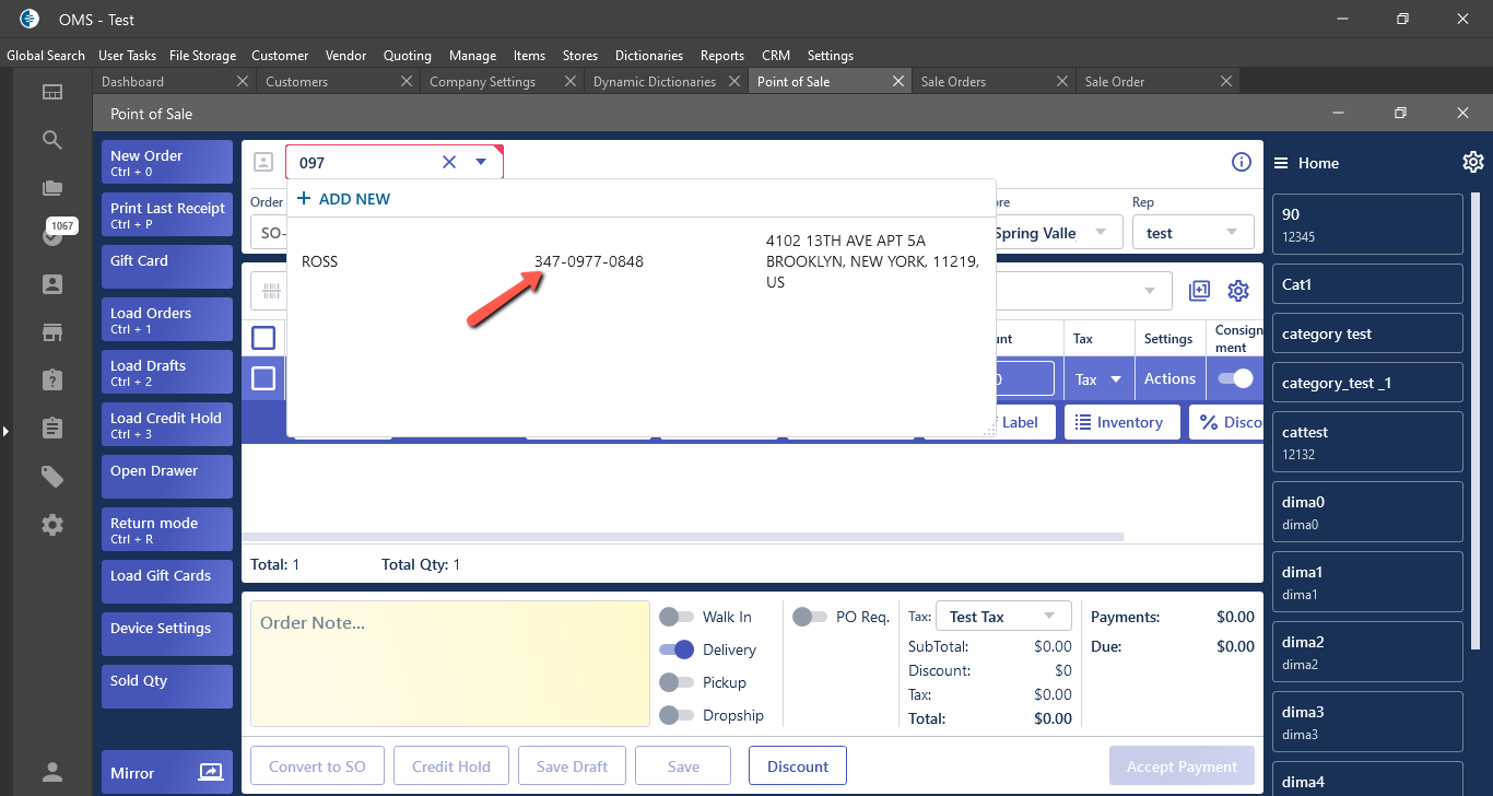 - if the user without Ship to Address marked Order as Delivery -> Ship to field is required and Save / Accept Payment buttons are disabled;