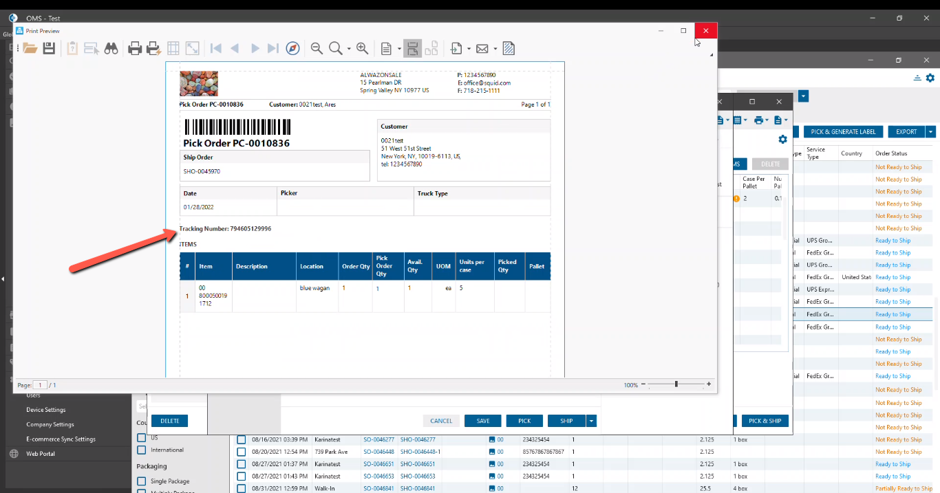 - Open Ship Order with linked carrier and Tracking number(or generate it previously) -> Click on the “Pick”;