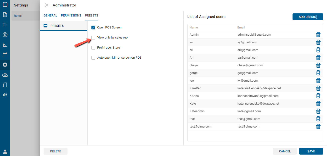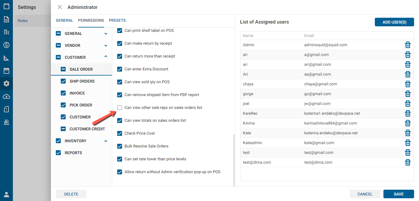- if the user is linked with sales rep and the checkbox is unchecked: