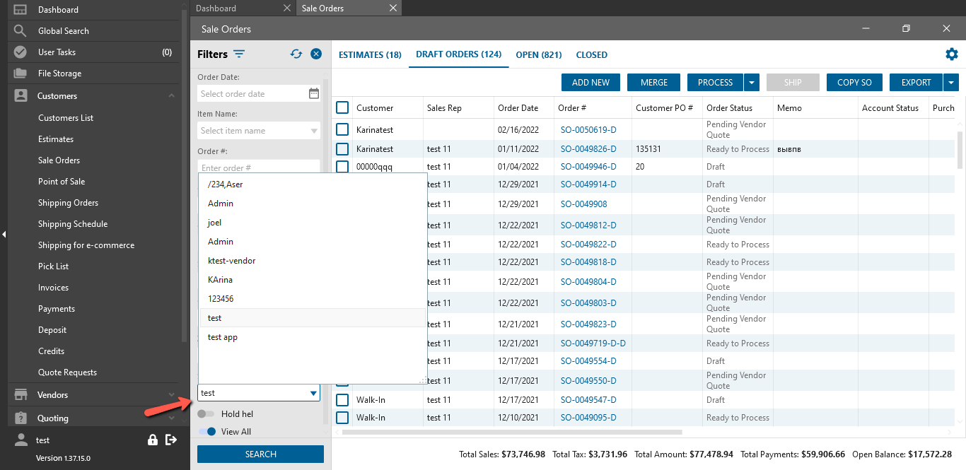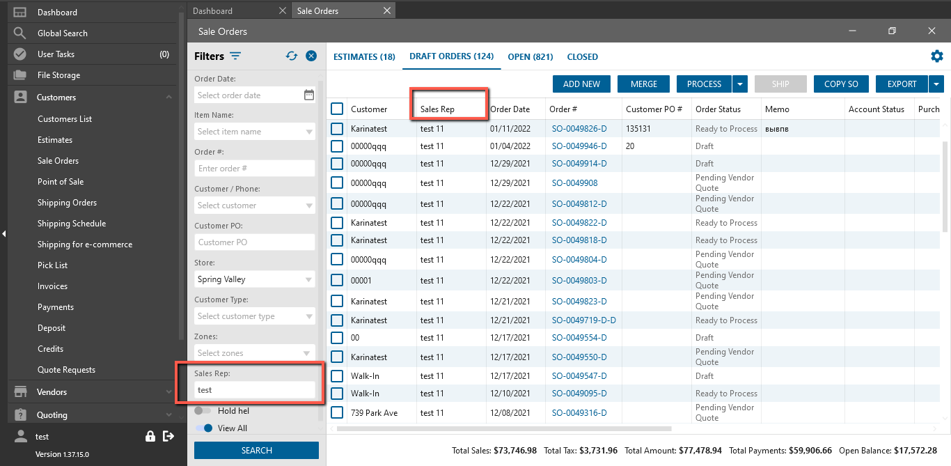 - on the Sale Order list form on the filter panel is automatically filled Sales Rep in the “Sales Rep” dropdown;