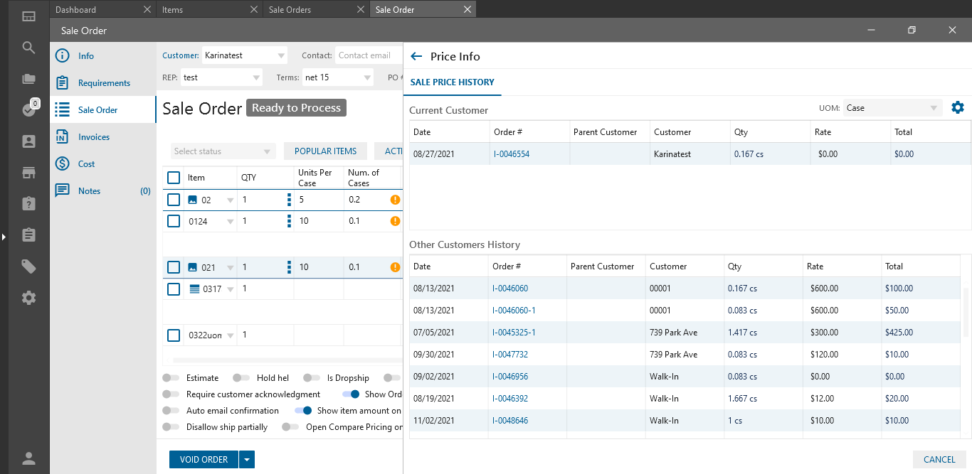 - on the Customer edit form -> Items tab -> Vendor Cost History tab is hidden