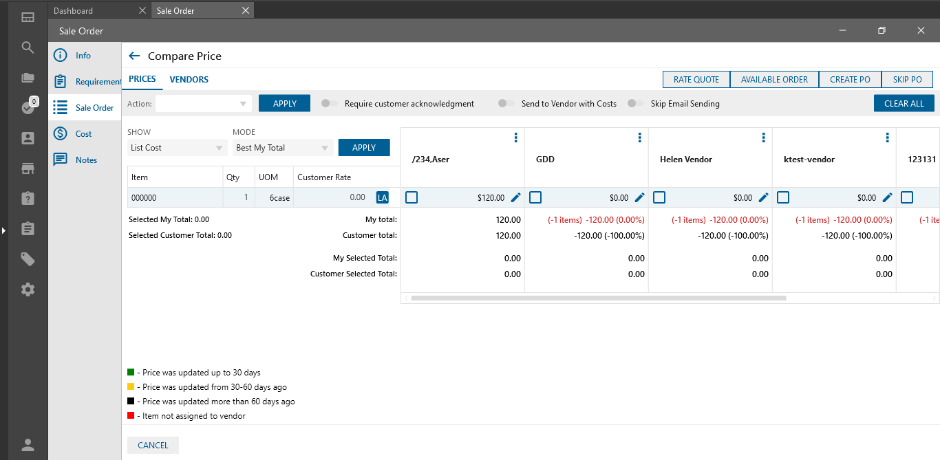 - On the Sale Order “Open Compare Pricing on Sales Order Save and Process” checkbox is checked by default;