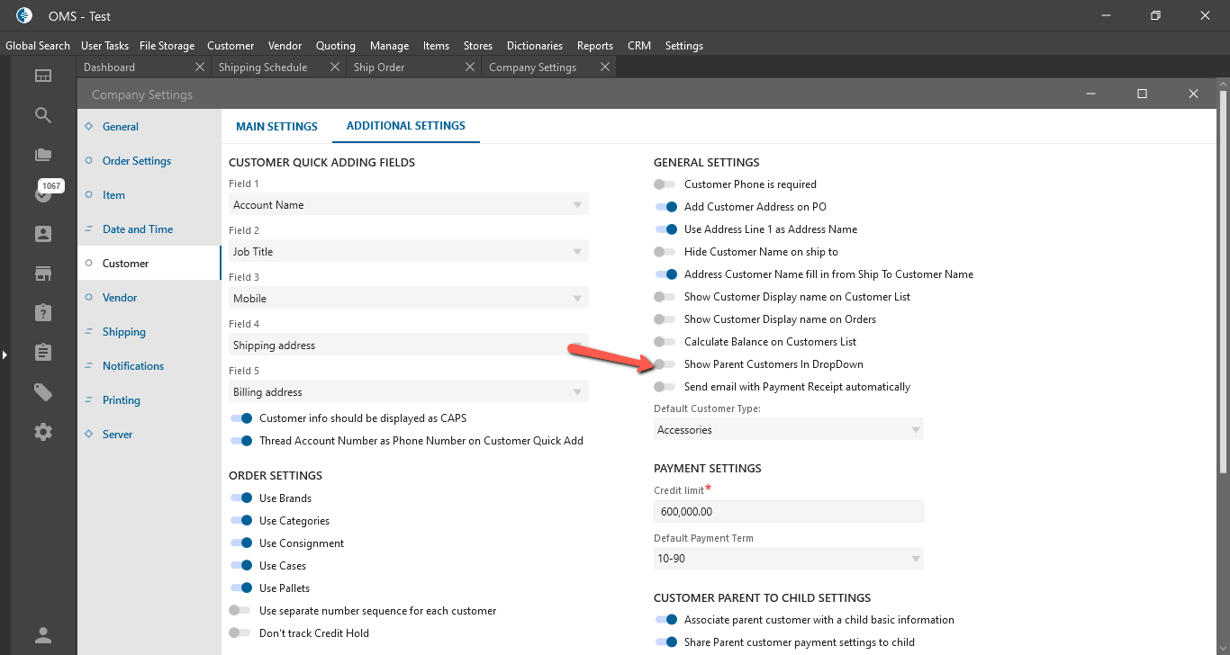 - “Show Parent Customers In DropDown” checkbox: