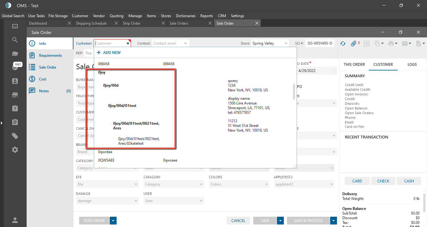 - in the “Customer” dropdown -> when user filled info -> Customer Parents and Childs also are displayed;