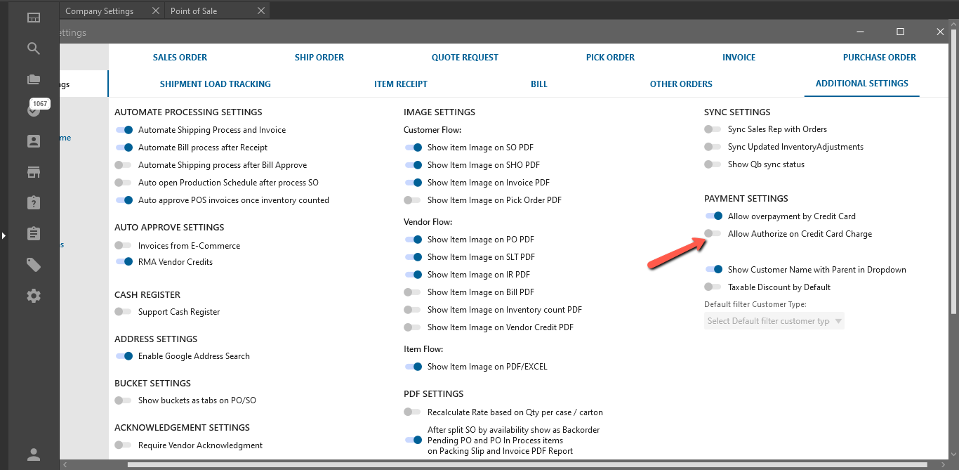 - “Allow Authorize on Credit Card Charge” checkbox: