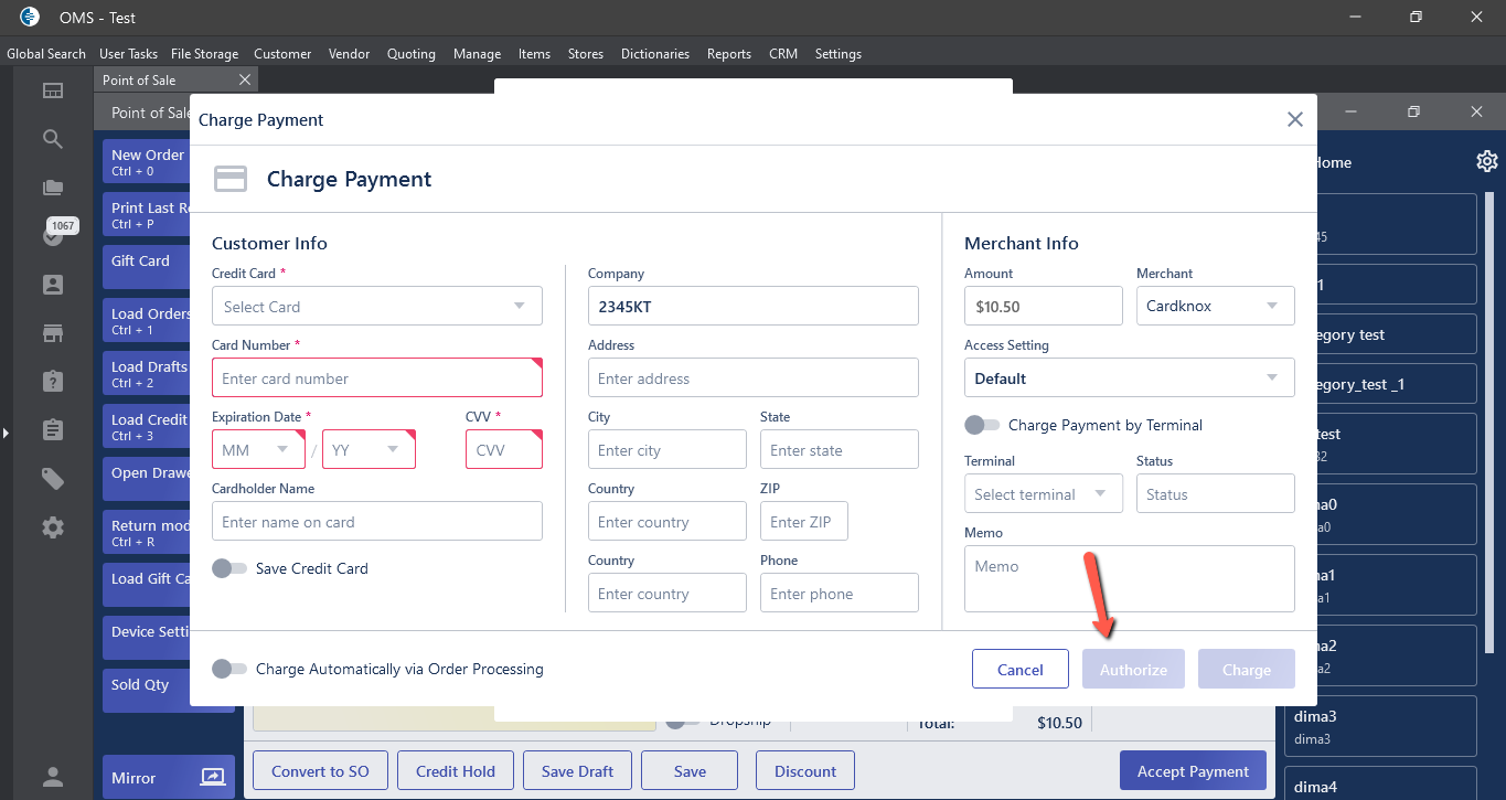 - on the “Charge Payment” form -> is displayed “Authorize” button;