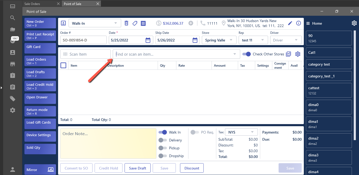 - after opening new Point of Sale order -> the focus is in the “Item Search” field.