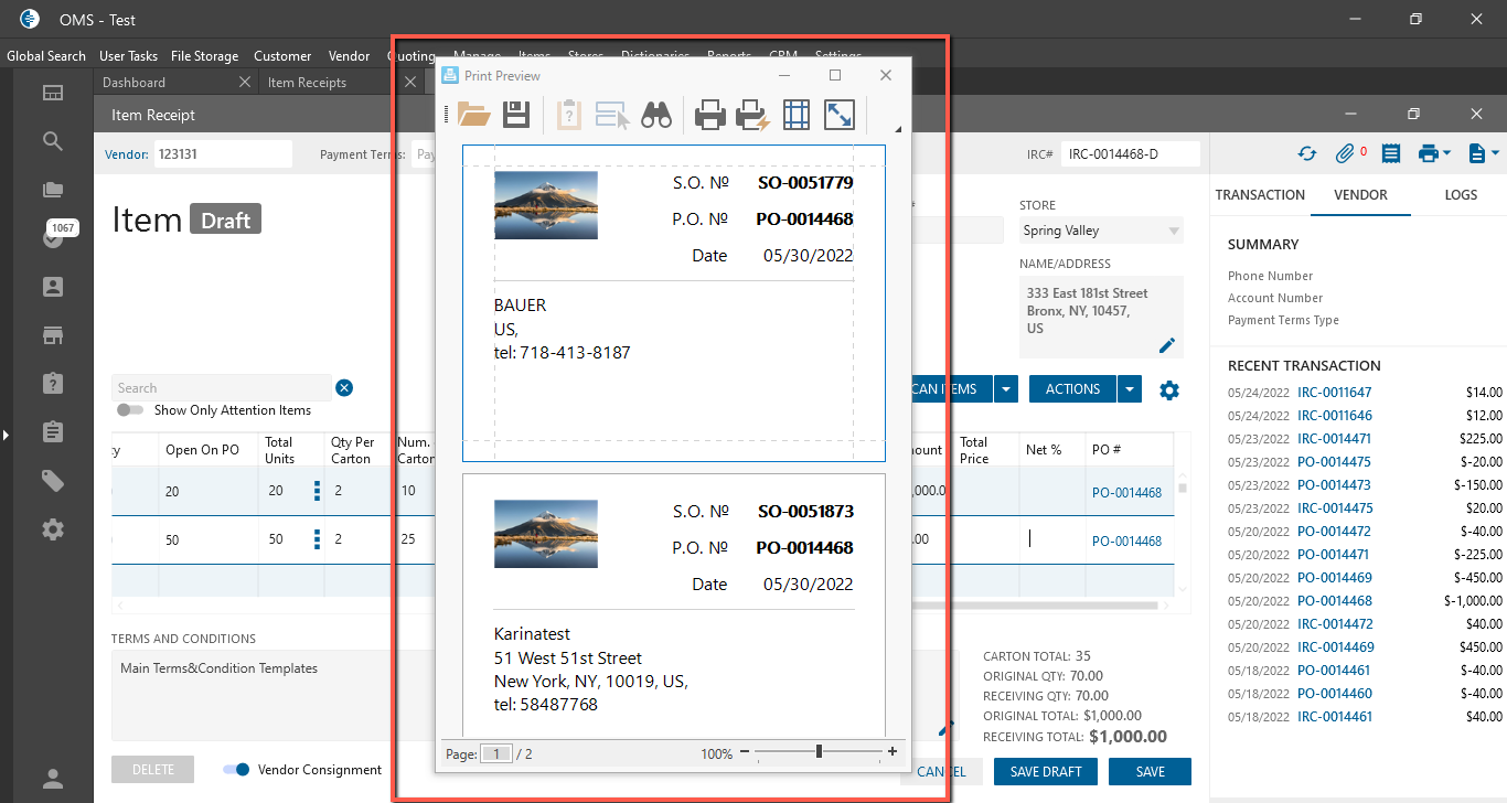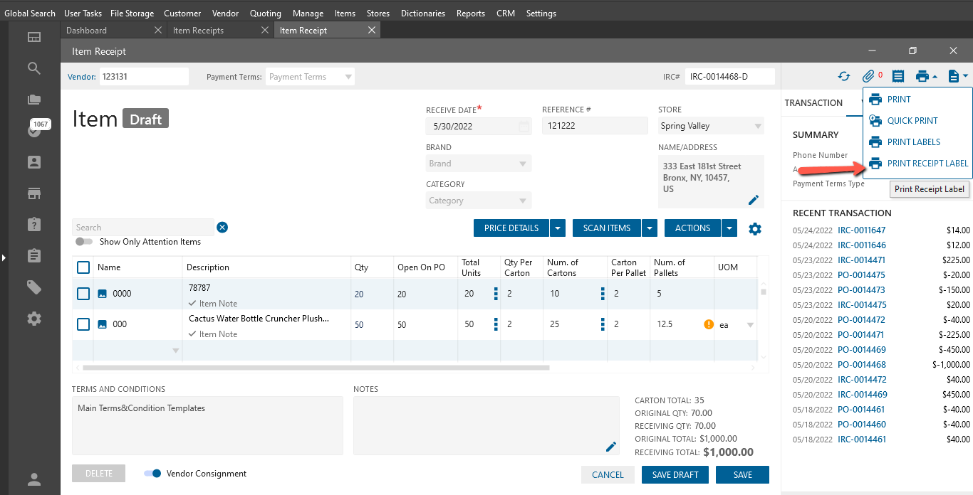 - is printed Depends on the Device Setting -> Item Receipt label;