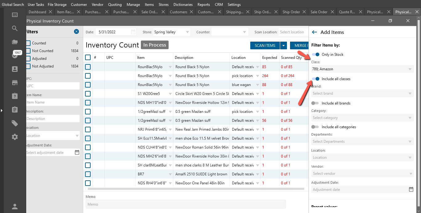 - after clicking on the “Add items” button -> in the datagrid is displayed all class items.