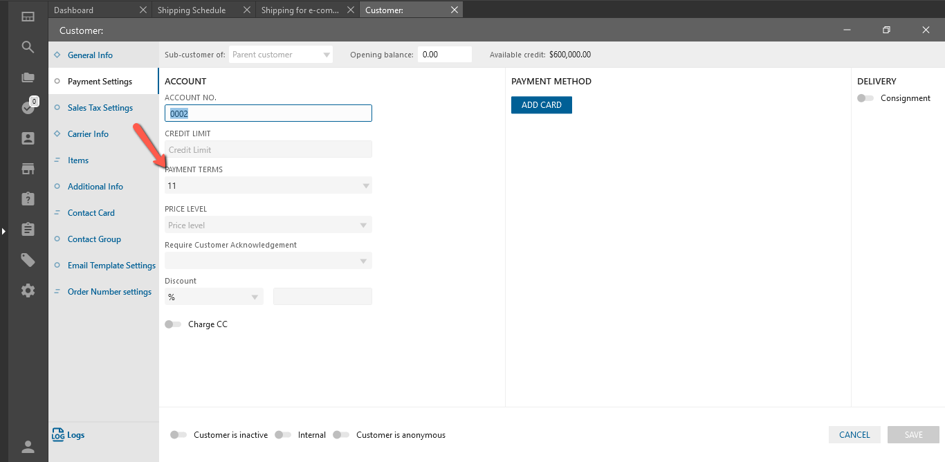- was added next to the “Credit limit” textbox in the Payment Settings block;