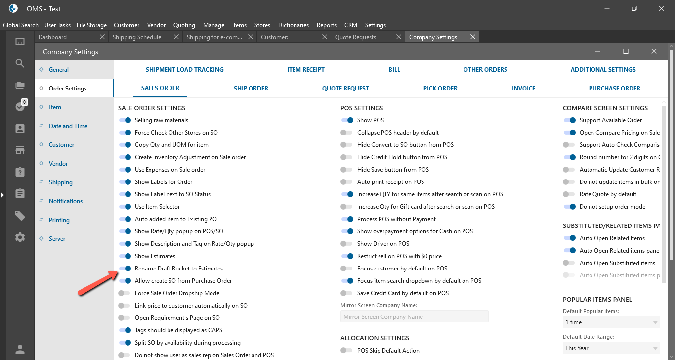 Company Setting -> Order Settings -> Sales Order tab: