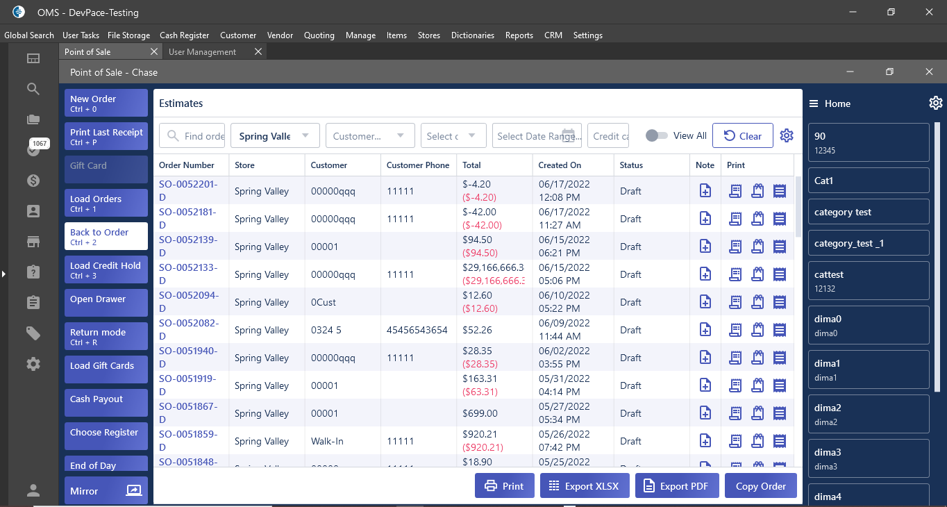 - Draft Orders List form -> Estimate Order List form;