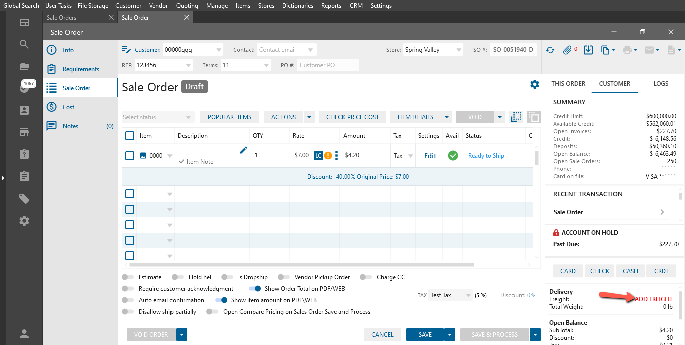 If in the Company Settings “Freight Item is required on each SO” checkbox is checked: