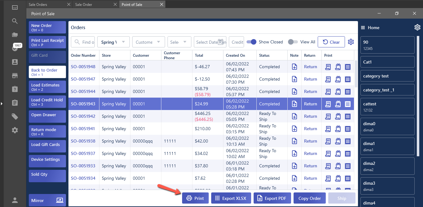 - Print Pick List;