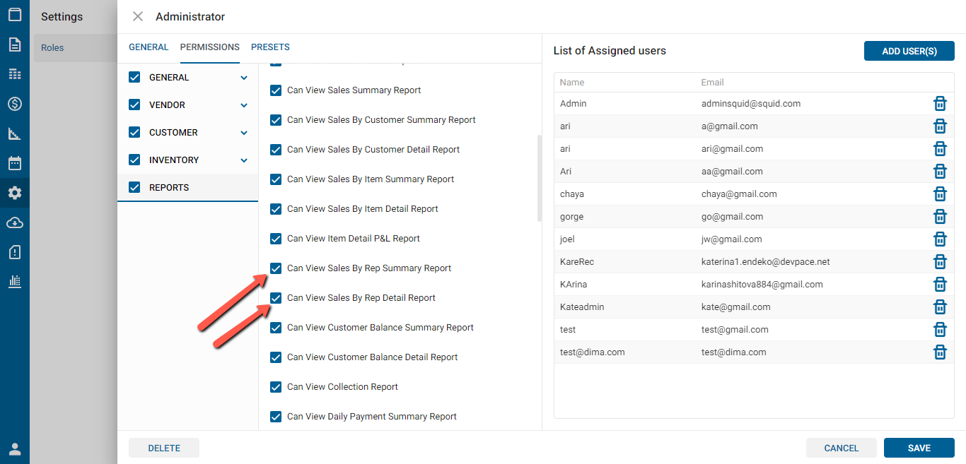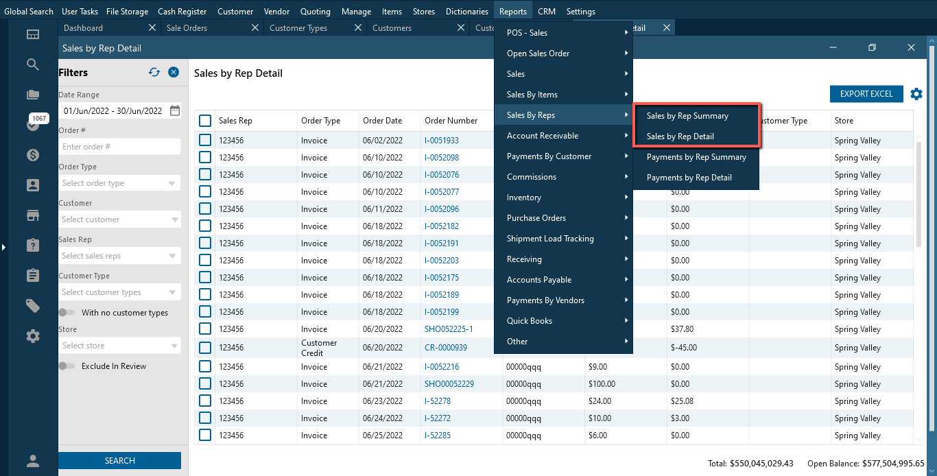 - “Sales by Rep Detail” Report is hidden from the Report Menu List form.