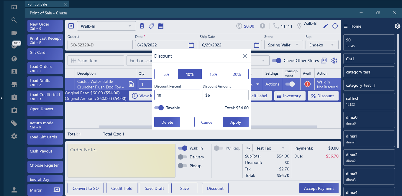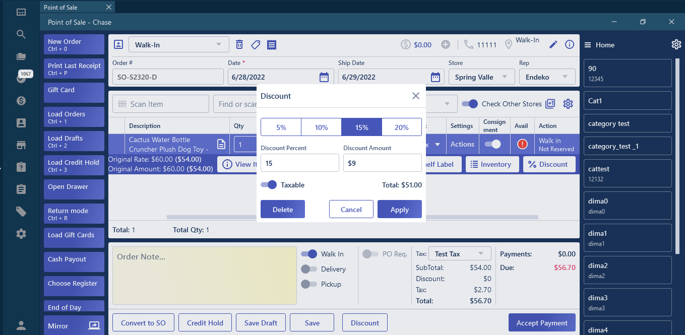 On the Point of Sale Orders, after clicking on the Discount button -> Discount Percent is changed.