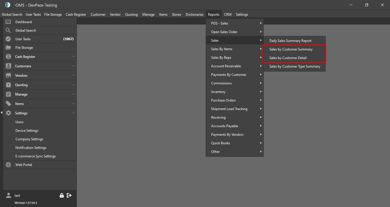- “Sales by Customer Summary” Report is hidden from the Report Menu List form;