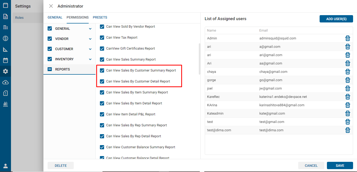 - Can View Sales by Customer Detail Report: