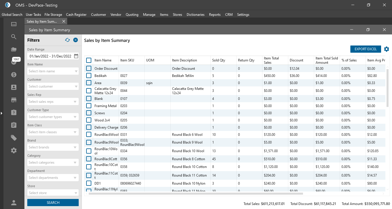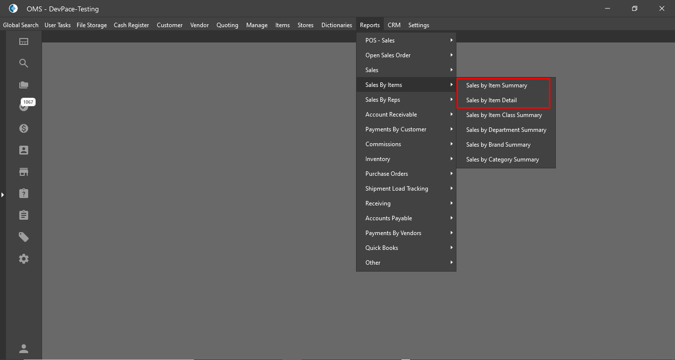 - “Sales by Item Summary” Report is hidden from the Report Menu List form;