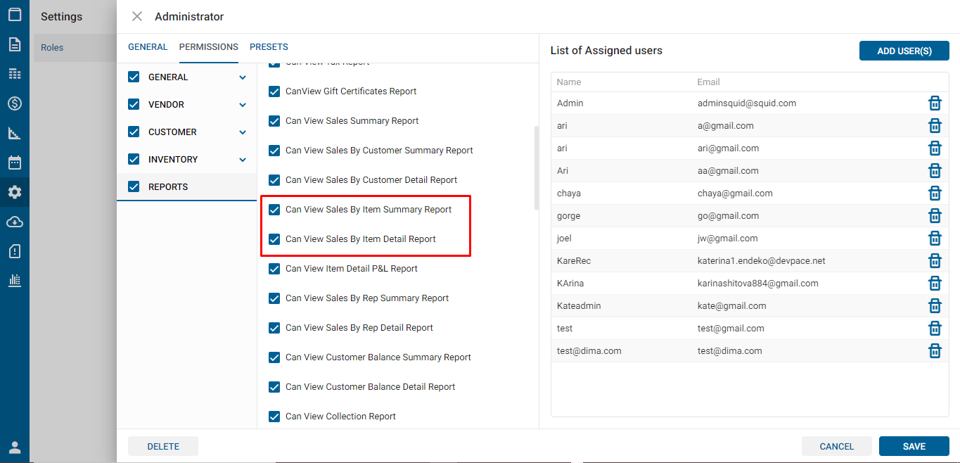 - “Sales by Item Detail” Report is hidden from the Report Menu List form.
