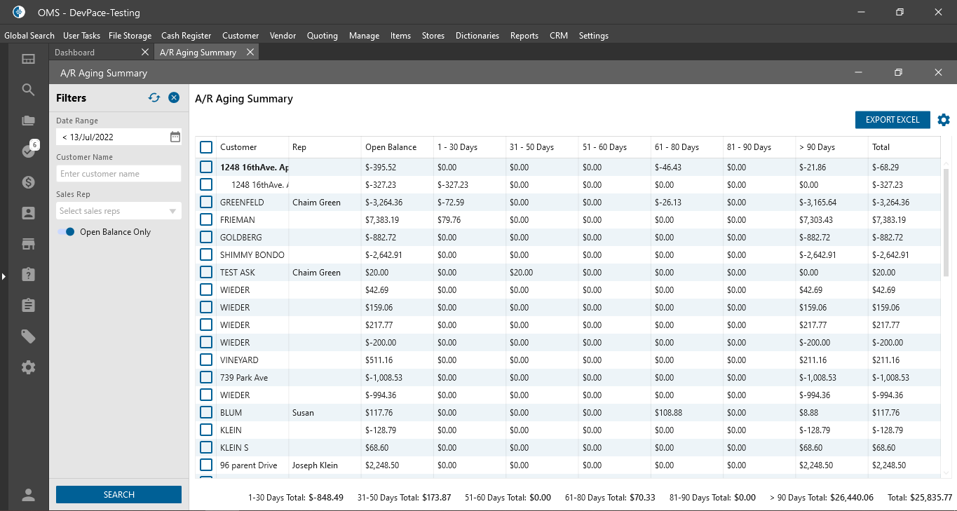 - if the checkbox is checked -> in the Datagrid are displayed only Customers with Open Balance not equal 0;