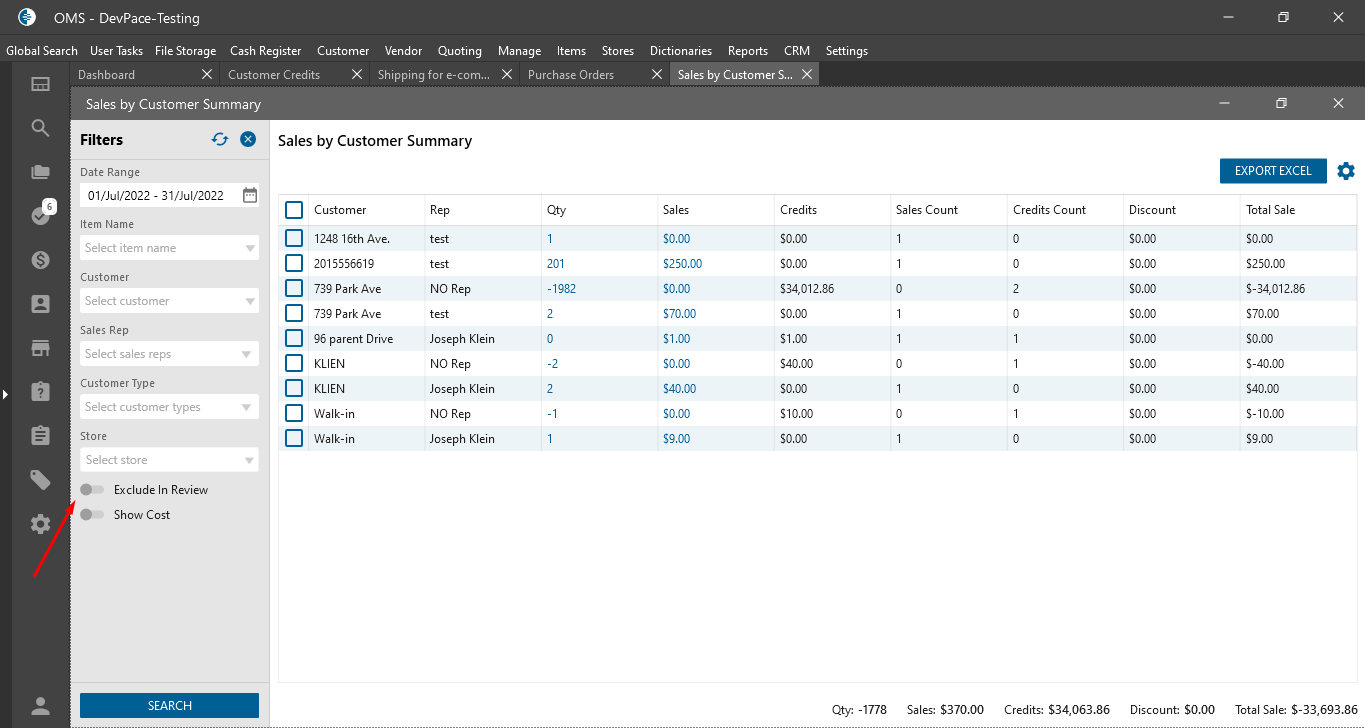 - Sales by rep detail.