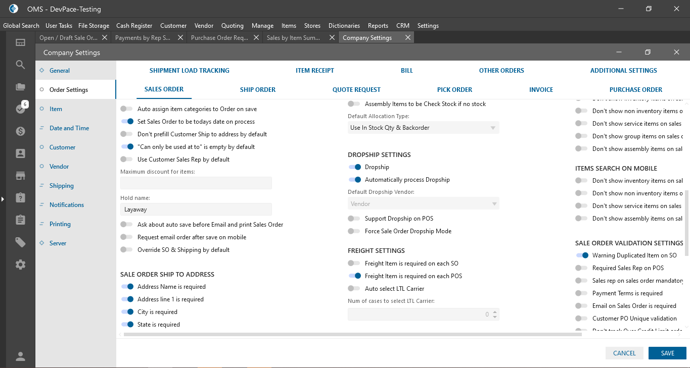 Company Settings -> Order Settings tab: