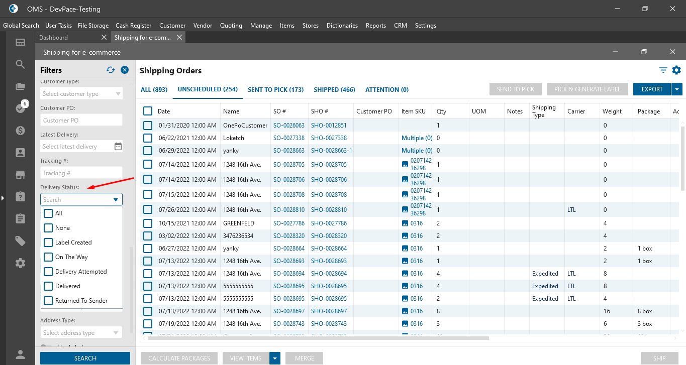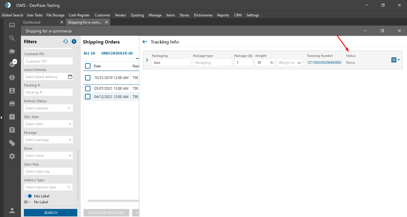 - if in the filter was selected Status -> in the Datagrid are displayed only Orders with the corresponding Package Status;