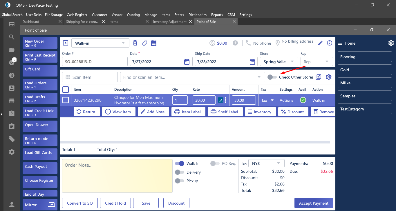 - if sum(item qty) in “Other stores” > = Ordered qty -> is displayed;