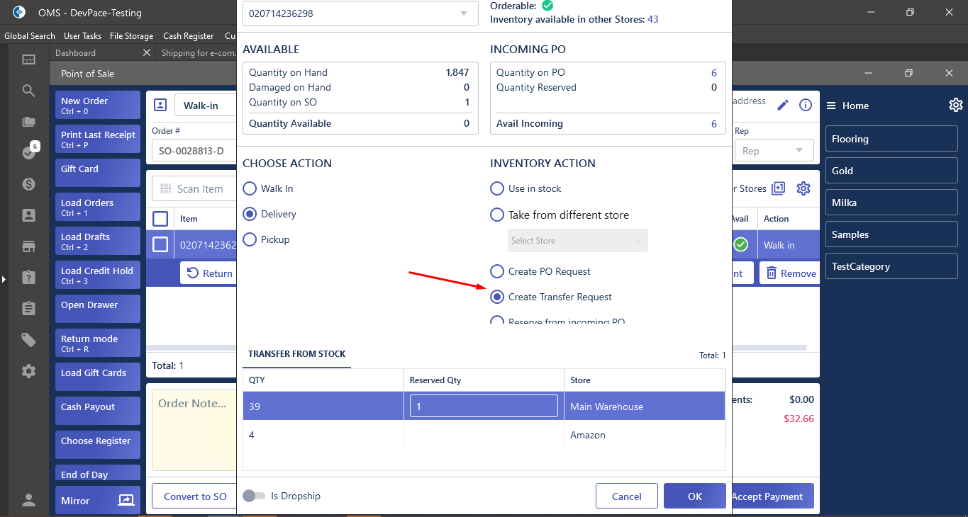 - the Transfer Request is created according to the entered “Reserved Qty”;