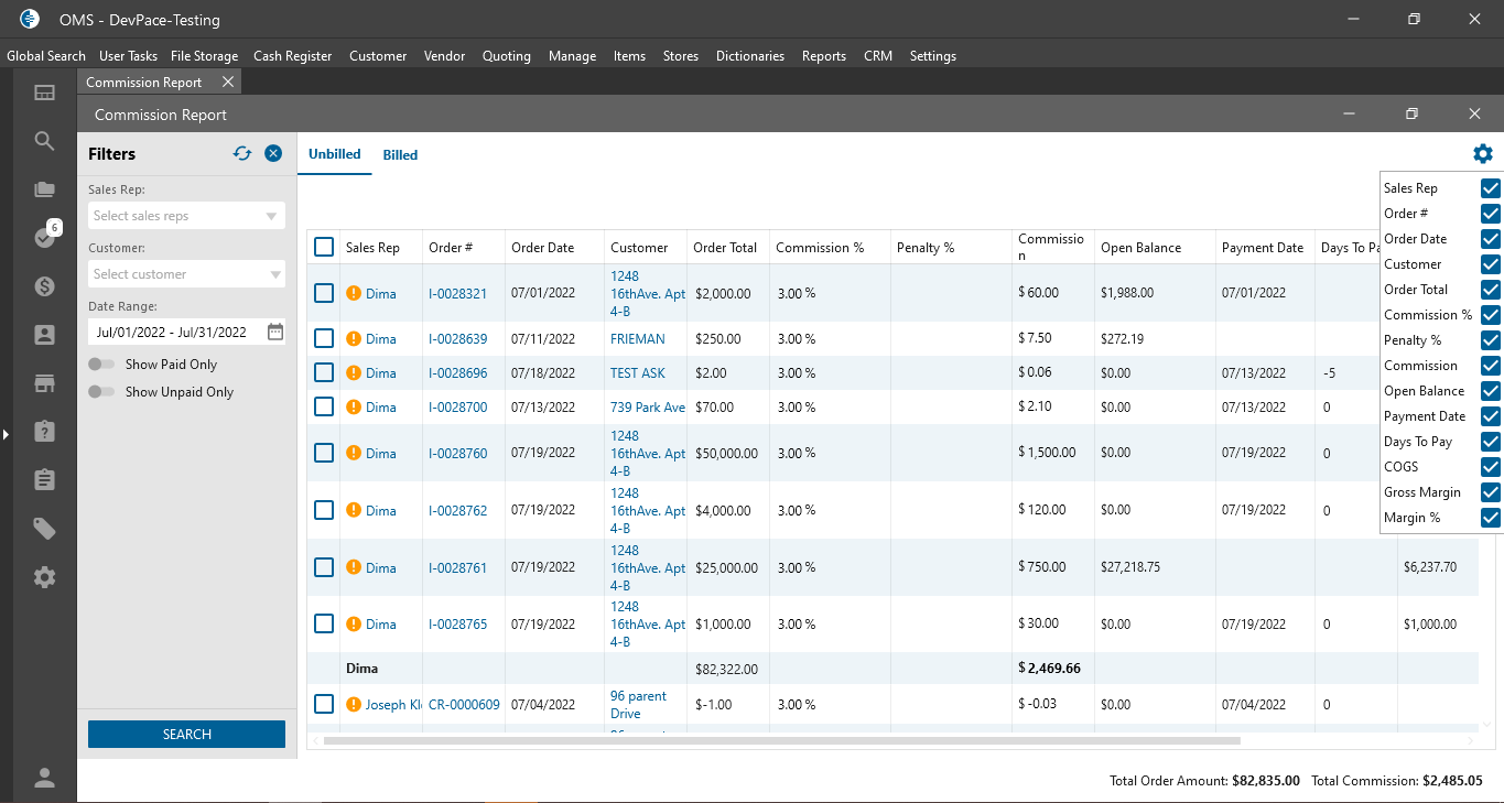 - Unbilled Commisions -> are dispalyed users with Invoice / Customer Credits without created Bill;