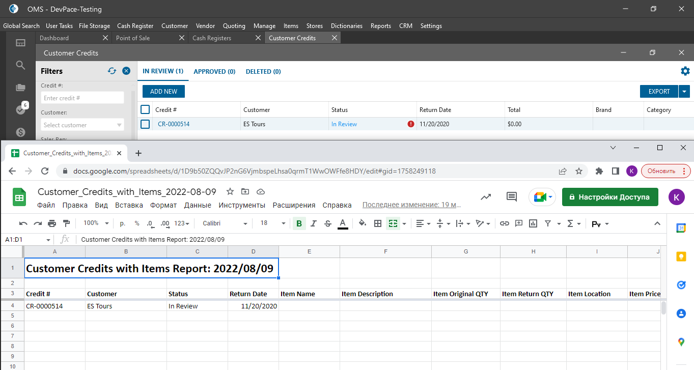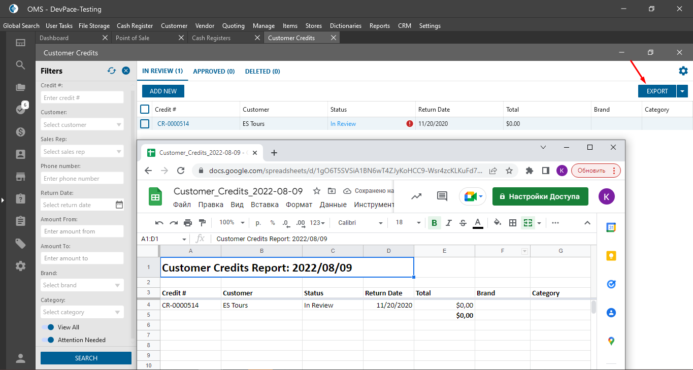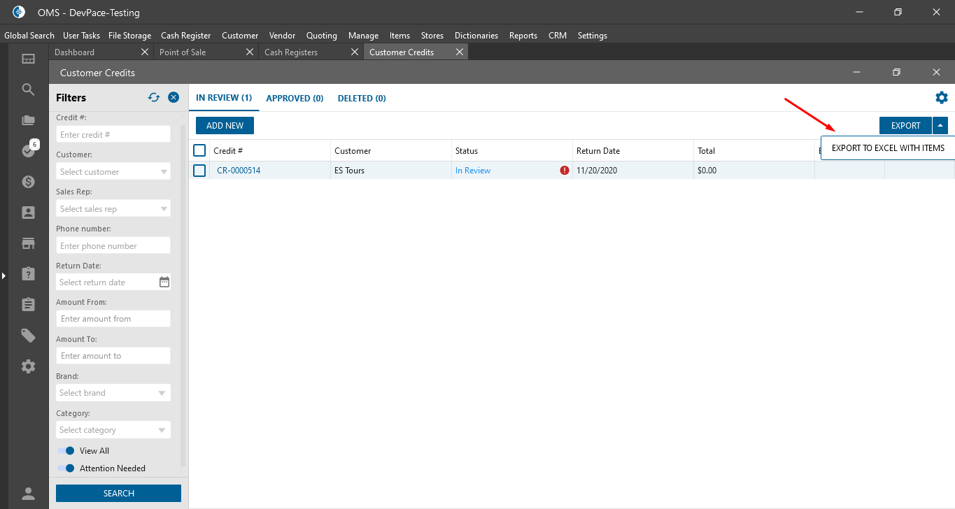 Customer Credit List from: