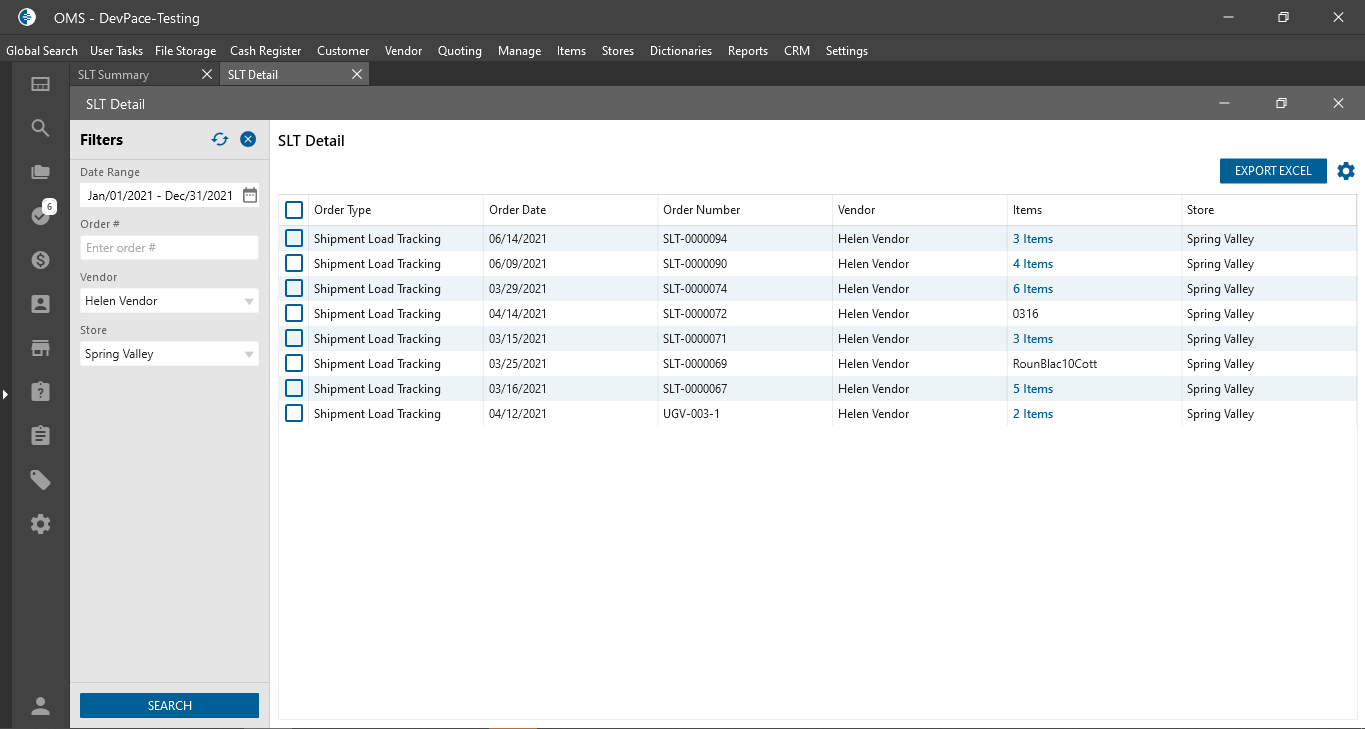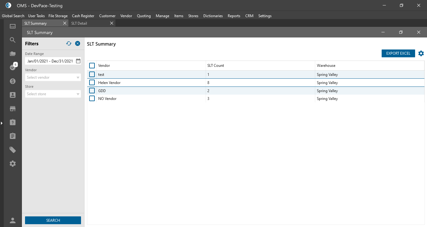 - SLT Count -> displays the count of SLT orders linked to Vendor and store in current period;