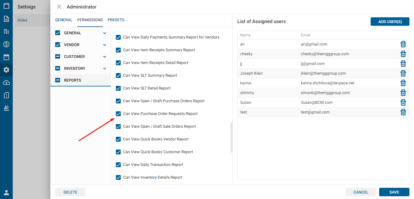 - Can View Purchase Order Requests Report: