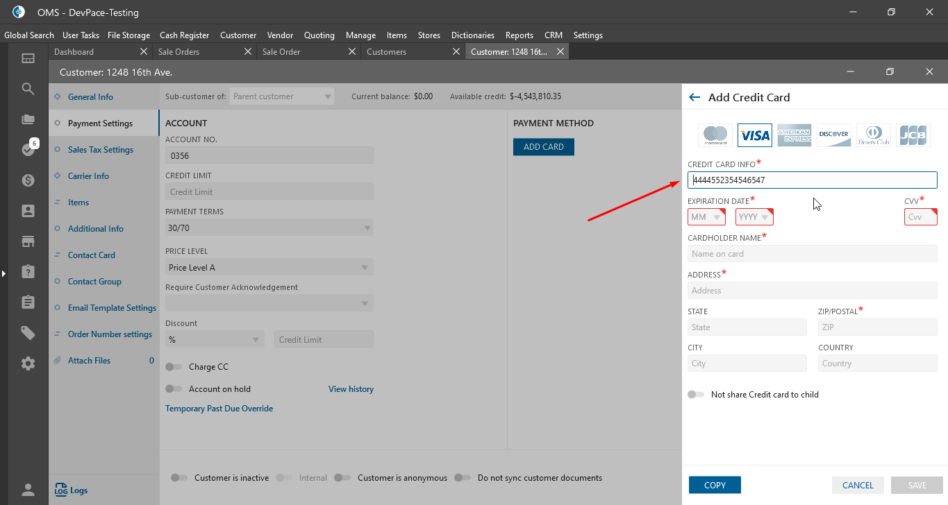 - The Credit Card number can be pasted to the “Add Credit Card” panel with the spaces.