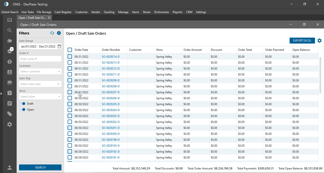 - In the Datagrid are displayed Open or Draft Sales Orders;