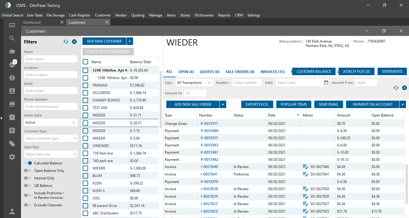 - “Total Amount” Value is hidden on the all tabs of the Customer List.