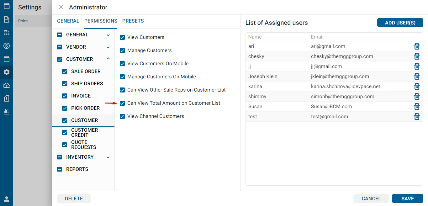 - was added next to the “Can View Other Sale Reps on Customer List” checkbox;