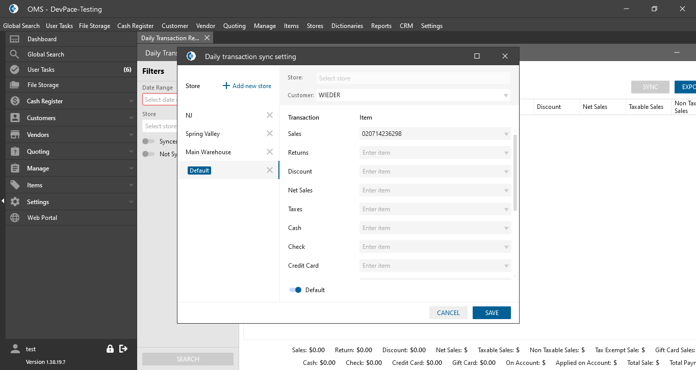 - setting from the current store is used for all stores which do not have synch transaction settings;