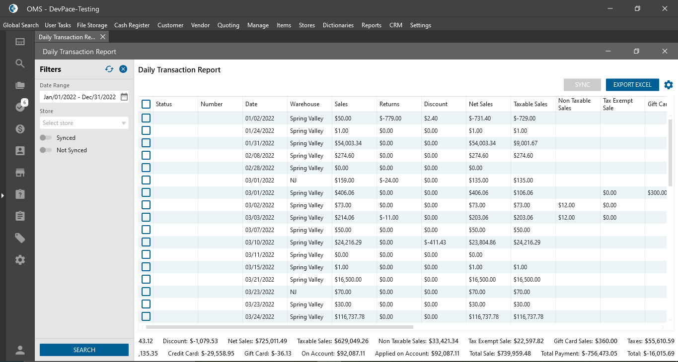 - “Daily Transaction” Report;