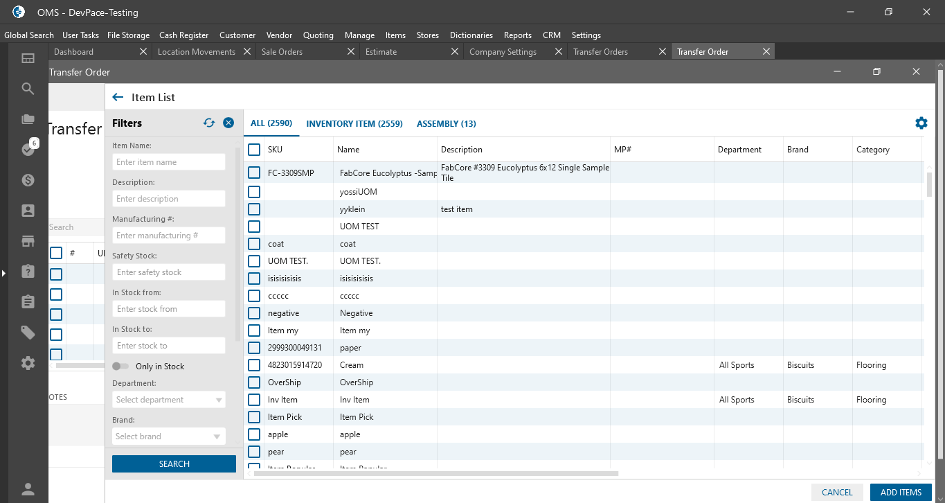 - columns were changed for Inventory and assembly items;
