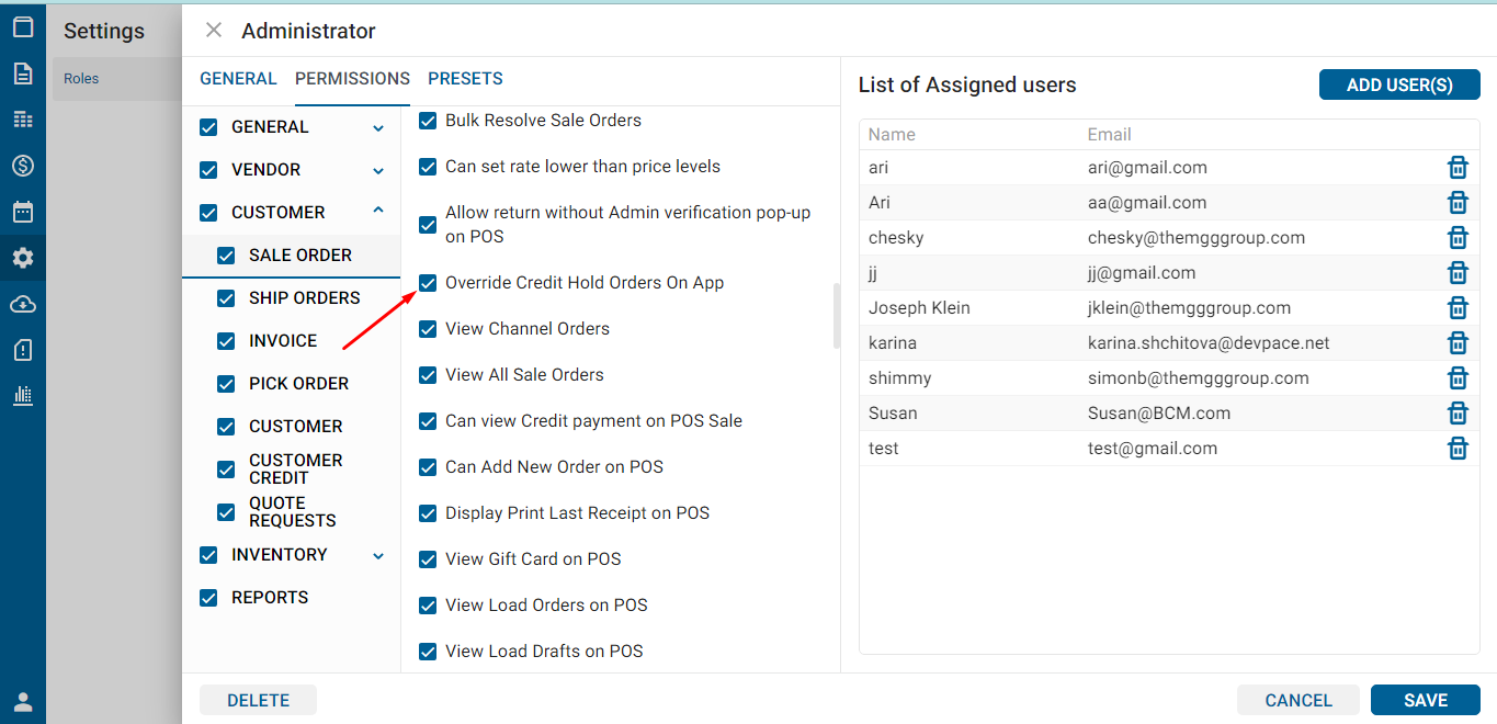 - On the App for such user -> Credit Hold Orders are processed without hold.