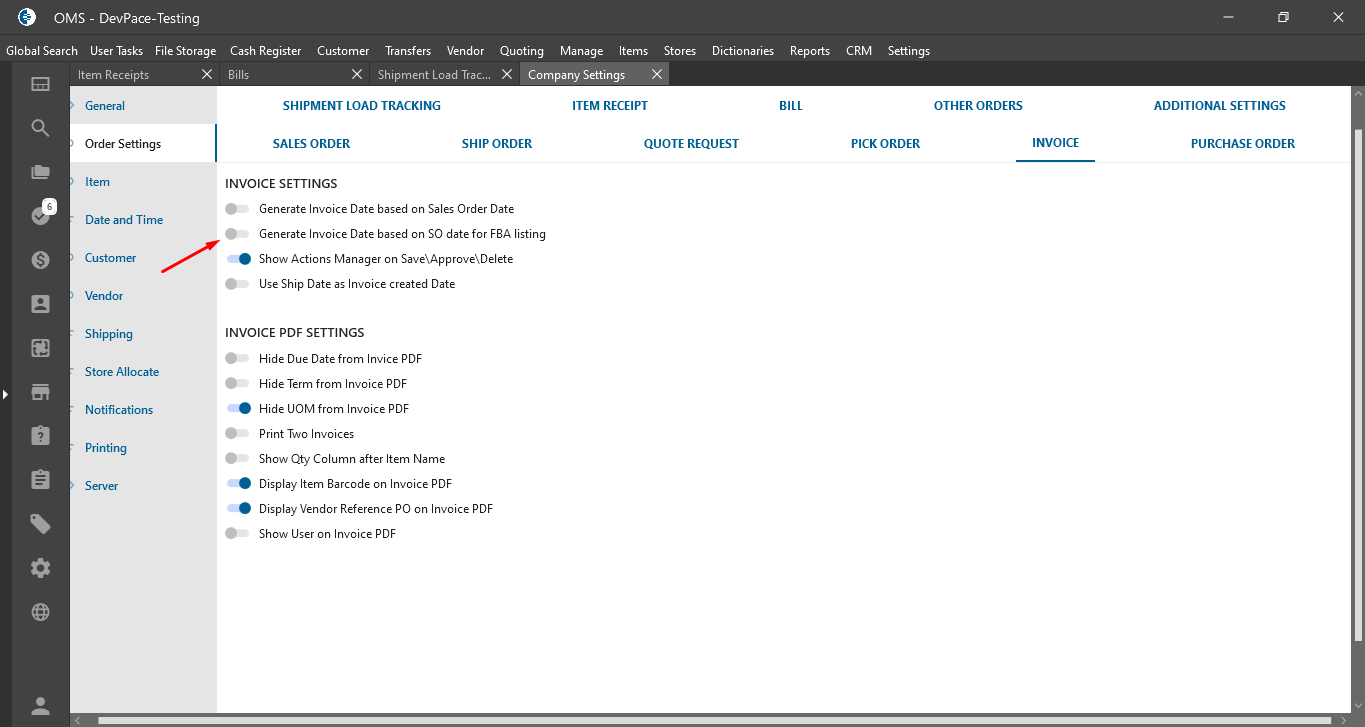 - “Generate Invoice Date based on SO date for FBA listing” checkbox: