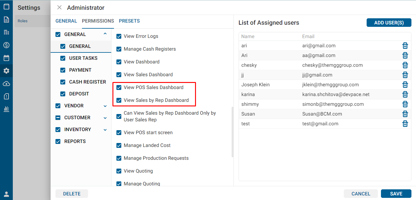 - Can view Sales by Rep Dashboard only by user Sales rep: