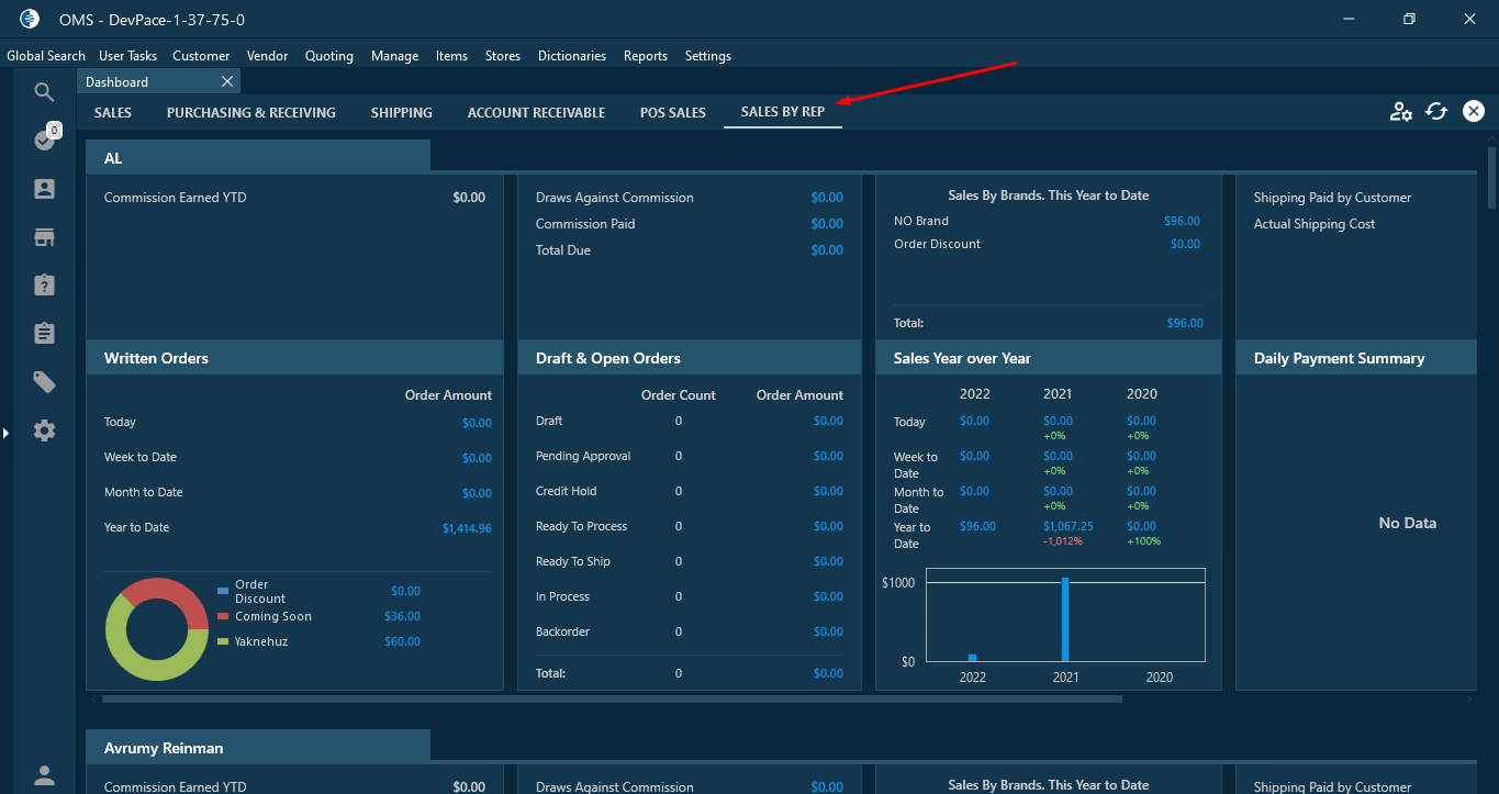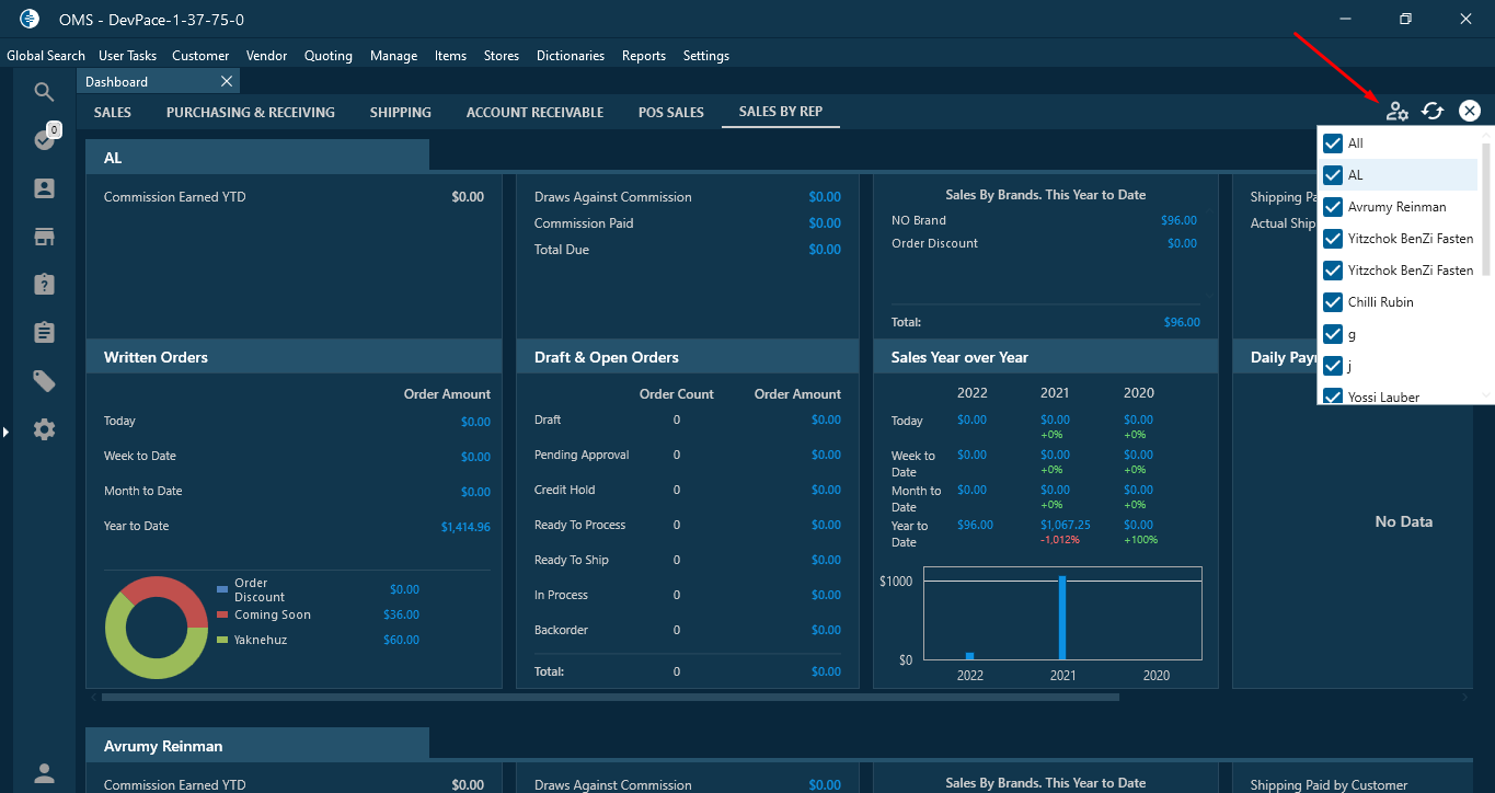 - on the Sales by Rep Dashboard the user has the ability to see only his Sales rep statistics.